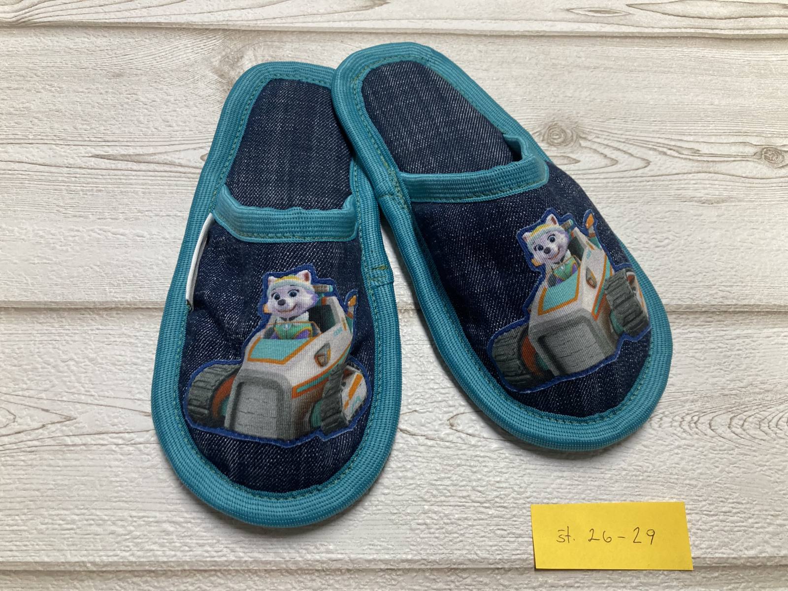 Otroški copati s priljubljenim motivom Tačk na patrulji. Copati so ročno narejeni v Sloveniji in so unikatni izdelek. Narejeni so troplastno in imajo podplat iz nedrseče gume.