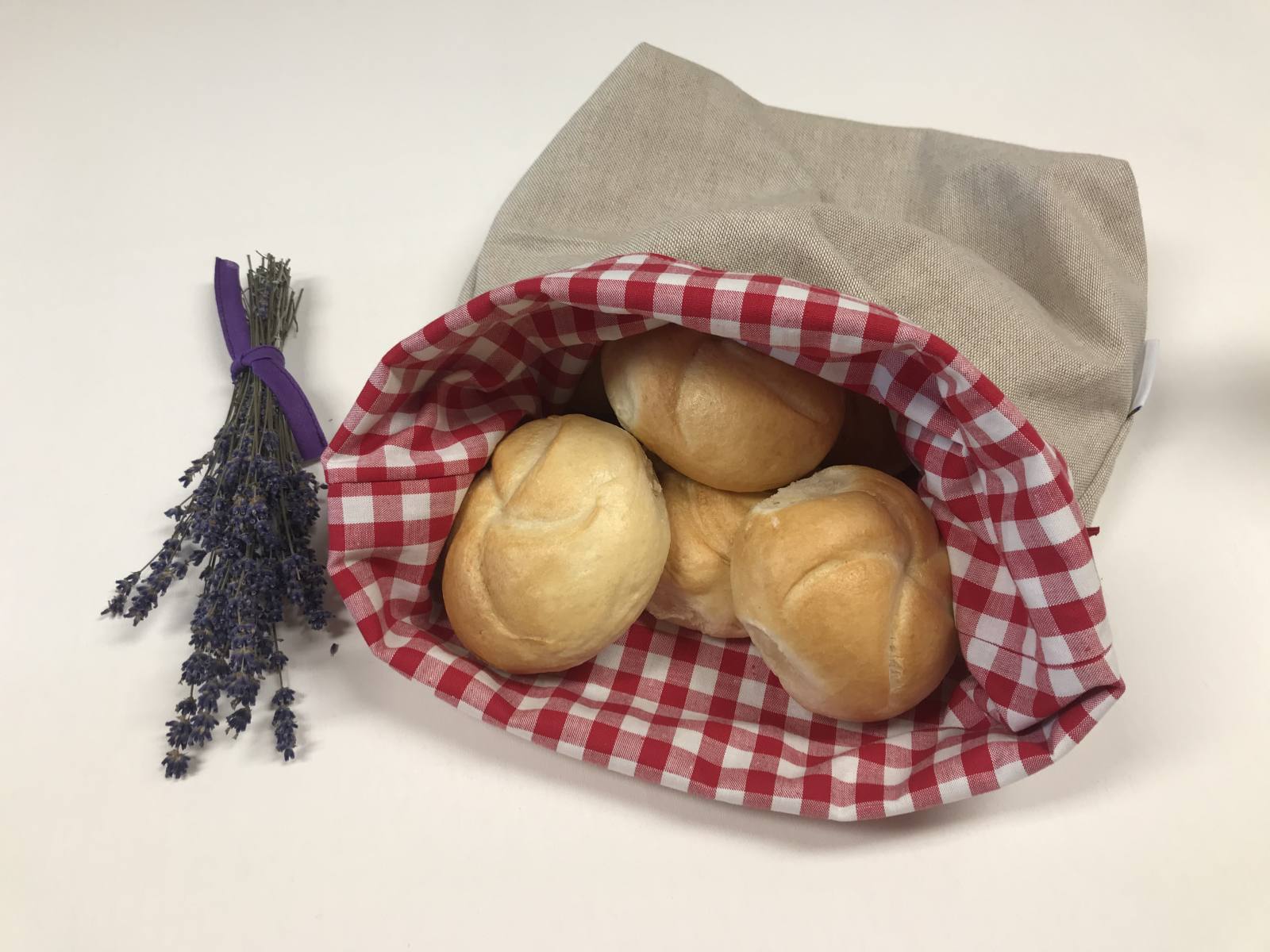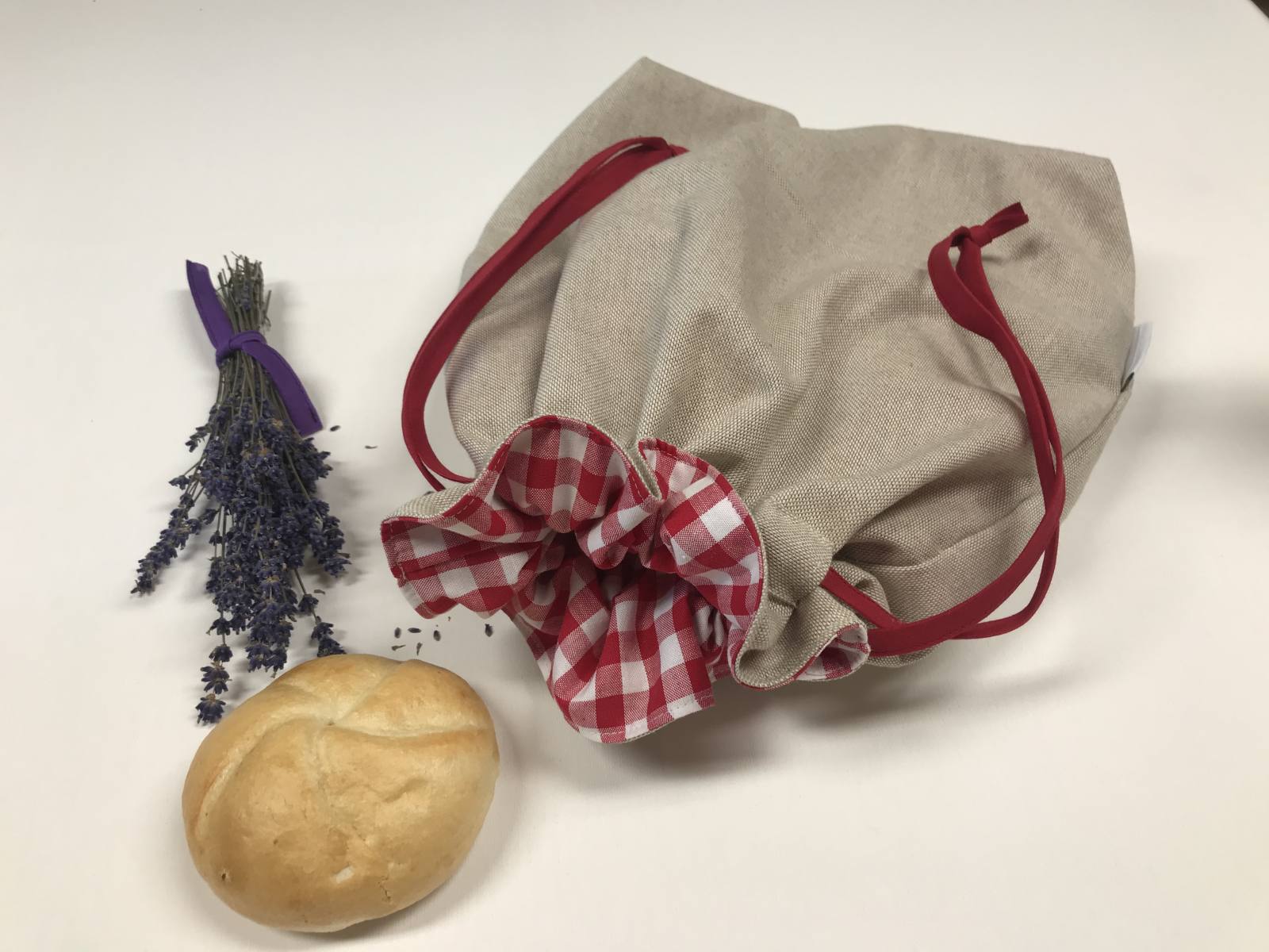 Vrečka / košarica za kruh je v velikosti cca 37x26x9 cm in se na vrhu zapira z trakom na poteg. Z vrečko greste lahko v pekarno po kruh. Ko pa kruh narežete ga pa lahko postrežete na mizi v košarici. Vrečke so trajnostne saj se lahko perejo in ponovno uporabljajo. Ročno šivano in narejeno v Sloveniji.